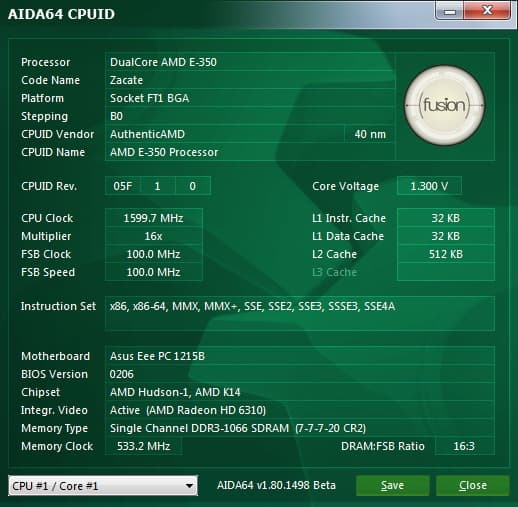 Строго говоря, выбор процессоров для нее шире и не ограничивается доставшемся нам E-350. Также можно выбрать и версию на С-50. А в ближайшее время поступят в продажу модели на E-450, отличающимся более высокой частотой. Мы же протестируем ноутбук на хорошо нам знакомом E-350, дополненном 4 ГБ оперативной памяти (в виде двух модулей DDR3-1066, но режим работы в данном случае все равно одноканальный, поскольку таковым является контроллер памяти в этом процессоре).