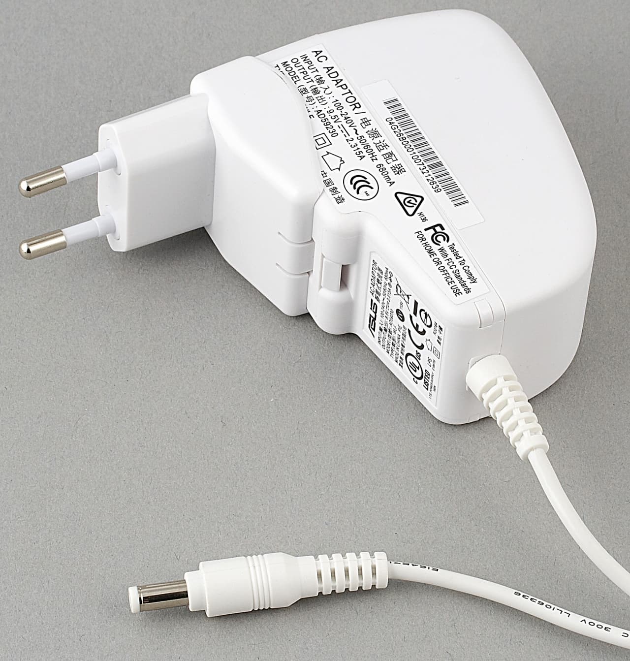 Кстати, Eee PC имеет интересный комплектный блок питания. Он похож на БП от мобильного телефона, а не от ноутбука– маленький и включается напрямую в розетку. БП имеет универсальную вилку, на которую надевается переходник для розеток разных стран.