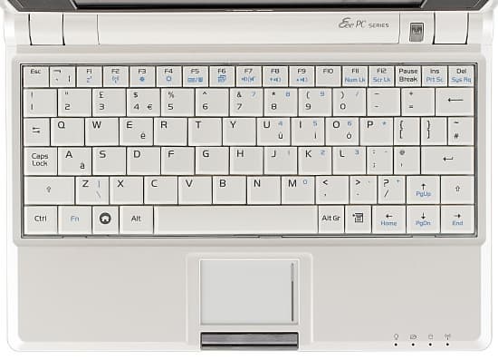 На маленькой клавиатуре печатать можно только двумя пальцами. Все клавиши одинаковых размеров, так что, если привыкнуть, промахов особо не бывает. Мне лично такой режим печати все равно кажется чрезвычайно неудобным, однако коллеги, не владеющие слепым методом печати, придерживаются другого мнения: печатать лишь немногим неудобнее, чем на большом ноутбуке, но размеры и вес делают Eee PC идеальным выбором для поездки в командировки, поэтому при возможности они бы точно прикупили такое устройство.