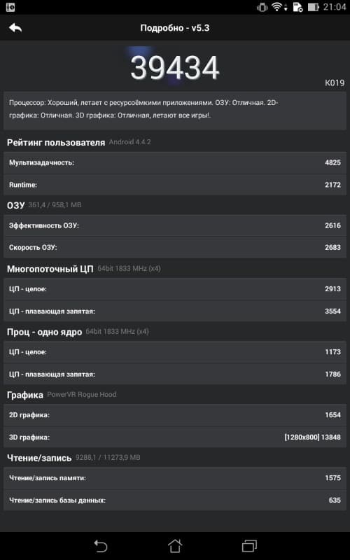 Сюрпризы продолжаются: по результатам бенчмарков новый Asus Fonepad делает уверенную заявку на «высшую лигу» — в Antutu он идет вровень с Xiaomi MiPad, а в MobileXPRT вообще его обгоняет! И место в первой десятке Antutu обеспечивается без особых затруднений