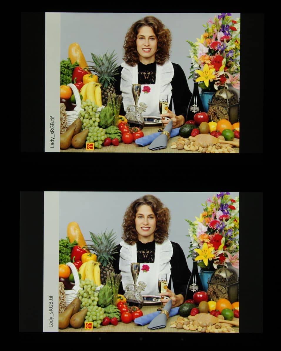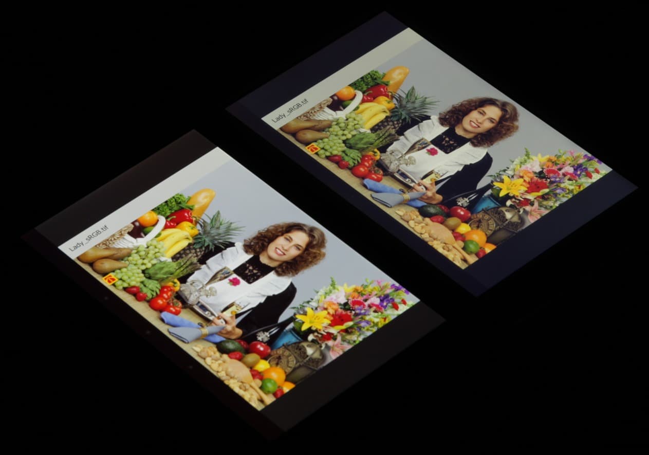 Цветопередача хорошая у обоих экранов, цвета насыщенные, цветовой баланс различается незначительно. И белое поле: