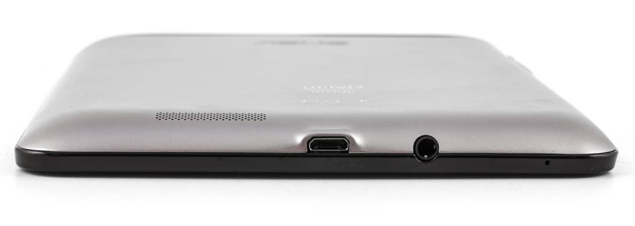 Внизу размещен разъем Micro-USB и гнездо для гарнитуры, а также второй микрофон. Рядом — решетка «планшетного» динамика.