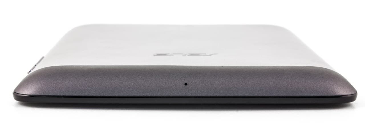 Семидюймовый дисплей планшета имеет широкую черную рамку. Внизу расположен логотип производителя, напротив него — телефонный динамик и камера. Короткие стороны рамки дисплея утолщены; длинные — сужены.