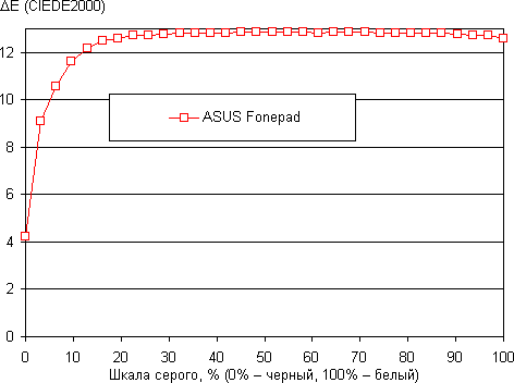 Данный прием позволяет увеличить яркость экрана при тех же затратах энергии на подсветку. Цветовая температура близка к стандартным 6500 К, но ΔЕ довольно высокая. Однако при этом оба параметра очень мало изменяются на всей имеющей значение части шкалы серого, что важнее для субъективного восприятия баланса белого, чем абсолютные значения цветовой температуры и ΔЕ. Темные области шкалы серого можно не учитывать, так как там баланс цветов не имеет большого значения, да и погрешность измерений цветовых характеристик на низкой яркости большая: