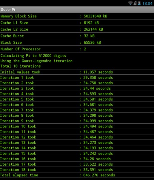 Результаты бенчмарка Super Pi выдающимися не назовешь. Двухкратное отставание от Nexus 7 обусловлено аналогичным отставанием по количеству ядер — два против четырех.