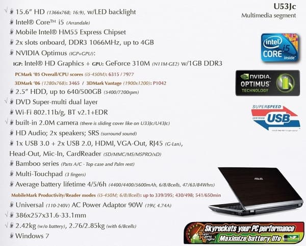 Кстати, обе модели имеют интересную веб-камеру: рядом с ней есть ползунок, который позволяет задвинуть ее специальной шторкой: чтобы пользователь был уверен, что камера не включится без его ведома. А вот следующий ноутбук, U53Jc, почему-то лишен этой возможности. Впрочем, поговорим о нем подробнее.