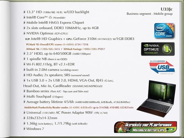 Посмотрим на спецификации 13-дюймовой модели U33Jc.