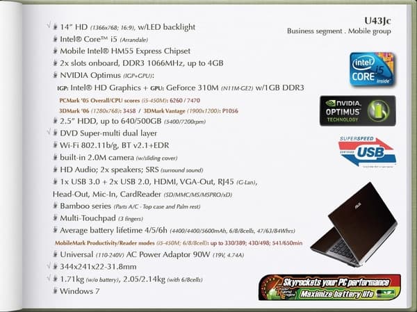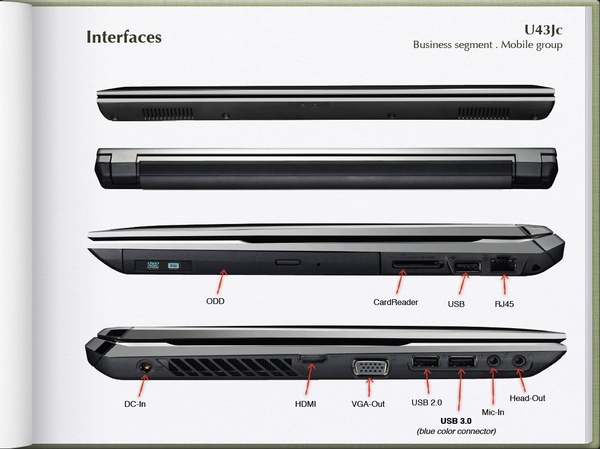 Перейдем к более крупной модели, U43JC, на базе матрицы в 14 дюмов.