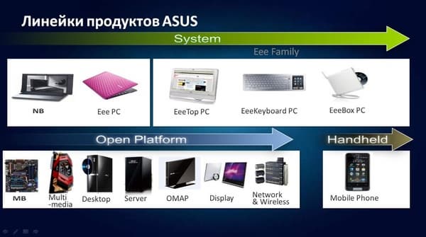 Особенно Джерри Шен выделил направление EEE PC, сейчас расширившееся до семейства устройств EEE. ASUS выступил родоначальником этого класса устройств и продолжает с успехом на нем работать.