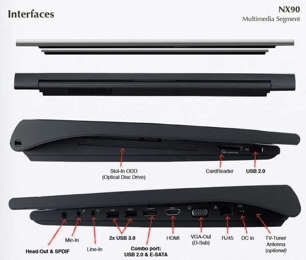 Из интересных устройств стоит отметить слотовый оптический привод, поддерживающий BD, полный набор аудиоразъемов, включающий даже линейный вход, наличие всех мультимедийных разъемов.