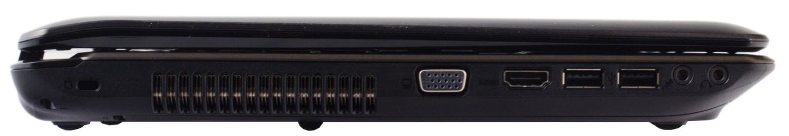 Взглянем на расположение элементов и портов на стенках ноутбука.