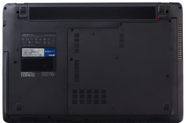 Дно ноутбука практически плоское, за исключением резиновых ножек, выступающих на оптимальную величину для обеспечения вентиляционного просвета под ноутбуком. Поскольку вентиляционные решетки располагаются по центру корпуса, держать ноутбук на коленях можно без риска перегрева.