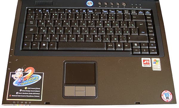 Матрица стандартная. Сюда бы ASUS ACE View, как на модели L5… Но нет, к сожалению, такого варианта не предлагается. Что касается разрешения, то, на мой взгляд, 1680х1050 это слишком. Конечно, игры смотрятся красиво, но с офисными приложениями комфортнее работать на M6B00N. За счет того, что широкоформатная матрица уже стандартной, на крышке нашлось место для дополнительной пары динамиков. В результате одна пара, расположенная на днище, обеспечивает достаточно приличную для ноутбука глубину звучания (правда, только в том случае, если ноутбук стоит на твердой поверхности). Вторая на крышке обеспечивает «верхи» и улучшает разборчивость диалогов при просмотре фильмов. В целом акустическая система ноутбука обеспечивает звучание выше среднего.