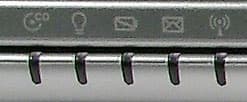 Индикаторы состояния ноутбука расположены в левом нижнем углу, при этом пиктограммы, объясняющие их значение, нанесены как на крышку ноутбука, так и на площадку.