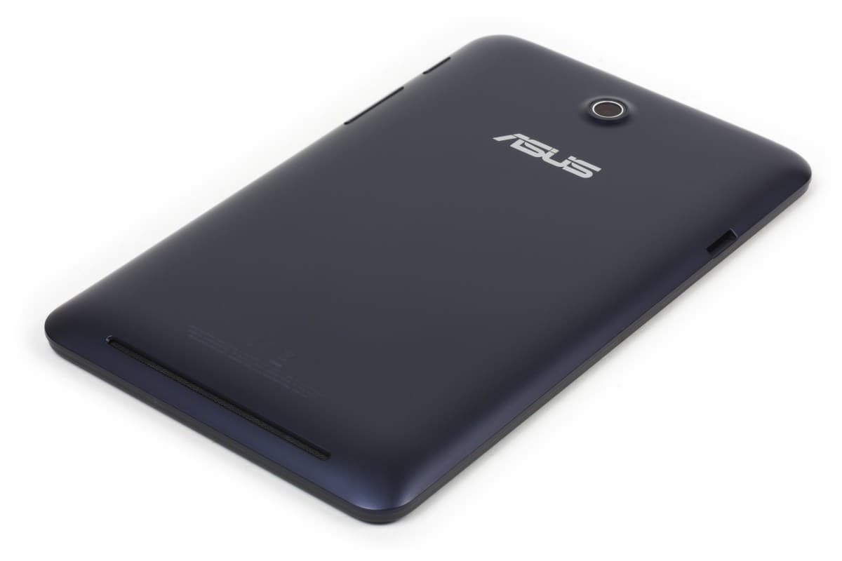 Задняя панель изготовлена из матового пластика. Какое-либо текстурирование отсутствует, но, несмотря на это, планшет из рук не выскальзывает. В нижней части задней панели расположена длинная прорезь динамика. Хотя в альбомной ориентации она перекрывается ладонью, громкость планшета от этого практически не уменьшается. С другой стороны слегка выпирает объектив камеры. На задней панели также нанесен логотип ASUS, который легко стирается, если его поскоблить.