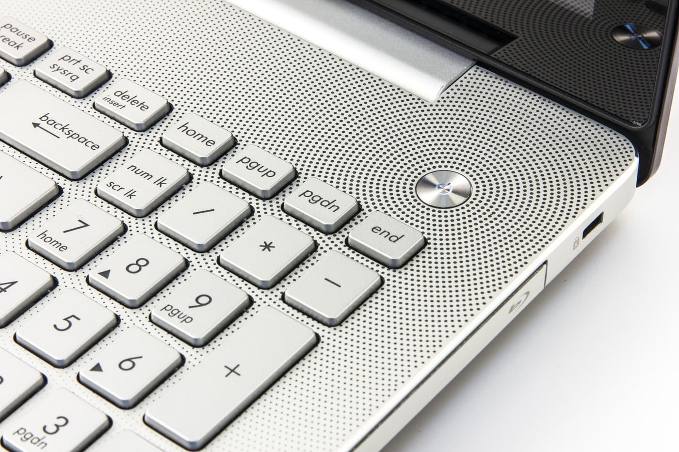 Клавиша Del расположена в правом верхнем углу основной клавиатуры, и ее можно найти на ощупь (промежуток между основным и цифровым блоком больше, чем промежутки внутри рядов клавиш). Ins убрали совсем (для нажатия этой клавиши придется использовать сочетание с Fn, но сейчас это общая тенденция), а остальные клавиши разместили справа вверху, над цифровым блоком. Редактировать текст с их помощью неудобно, т. к. они слишком далеко от курсорных — приходится убирать руку из стандартного положения на клавиатуре и тянуться к ним. Лучше уж освоить редактирование с помощью цифрового блока.