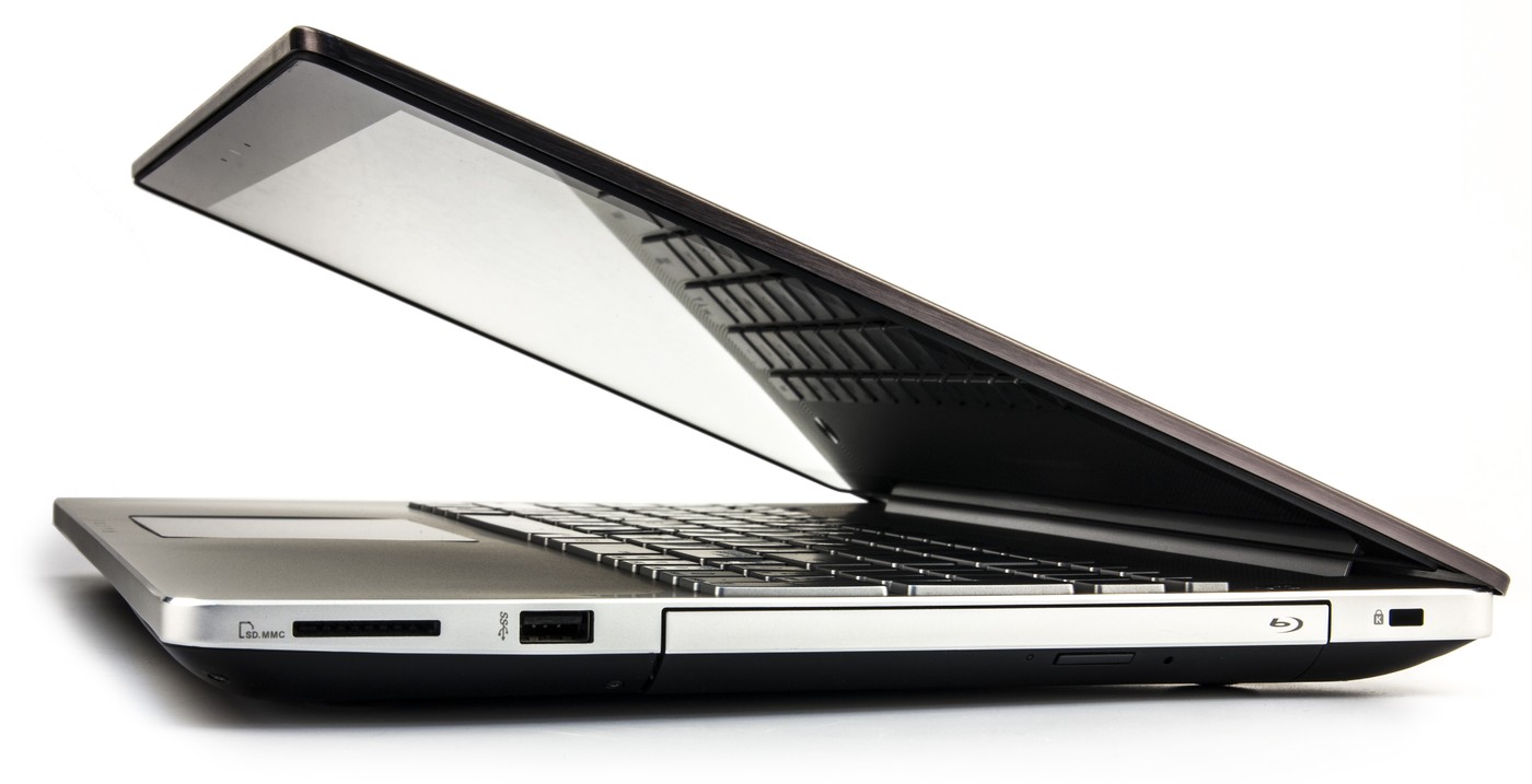 На правом борту находится разъем кенсингтонского замка и оптический привод (у нас был установлен Blu-ray). Здесь же находится еще один порт USB и картовод SD.
