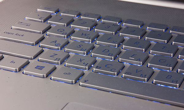 Отметим, что клавиатура имеет подсветку, причем трехуровневую, регулирование которой осуществляется с помощью функциональных клавиш. Нужно отметить, что подсветку имеет смысл использовать только в темноте — в противном случае подсвечиваемые буквы на клавишах сливаются с цветом самой клавиши и становятся плохо различимыми.