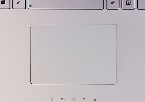 Сенсорная поверхность имеет легкую шероховатость и немного заглублена. Она имеет такой же цвет, что и остальная поверхность корпуса. Чувствительность тачпада не вызывает нареканий.