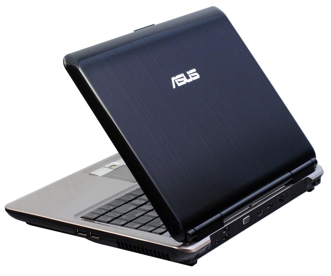 Корпус сделан в том же стиле, что и у модели ASUS N50Vn, которая уже была у нас на тестировании. Правда, здесь использован другой цветовой оттенок, ноутбук темно-синий. Утверждается, что крышка корпуса и клавиатурная панель имеют специальное покрытие ASUS Infusion, благодаря которому они не царапаются и сохраняют блеск даже после длительной эксплуатации. Поскольку у нас на тестировании был относительно свежий ноутбук, проверить истинность этого утверждения не удалось.