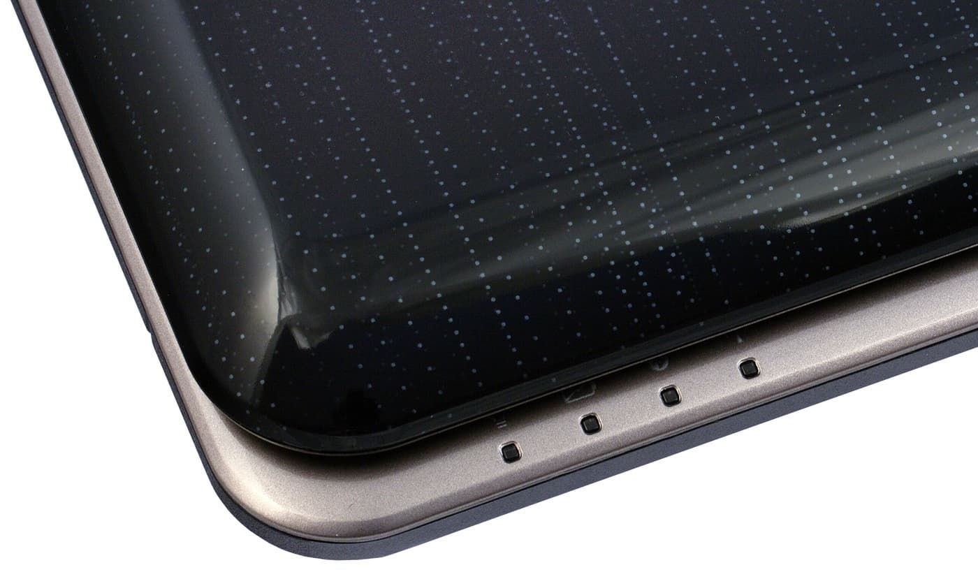 Корпус строго прямоугольный, с прямыми линиями и очень сильно скругленными углами, я бы даже сказал — зализанный. В закрытом состоянии крышка и корпус не выглядят единым целым: видимо предполагается, что ноутбук большую часть времени будет стоять открытым.