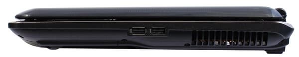 На правом боку расположены всего лишь два порта USB (если штекеры USB-устройств длинные или в разъем воткнута длинная флешка, она может мешать руке с мышкой, но зато удобно их втыкать и вытаскивать) и вентиляционная решетка, из которой дует на руку с мышкой. Зимой и когда холодно это приятно, летом — скорее нет.