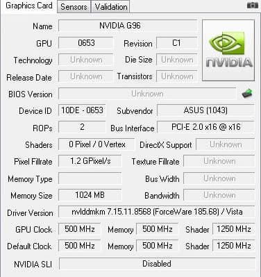 GPU-Z имевшейся версии не знает этого чипа, поэтому полезной информации крайне немного. Everest считает, что чип идет в паре с видеопамятью DDR2.
