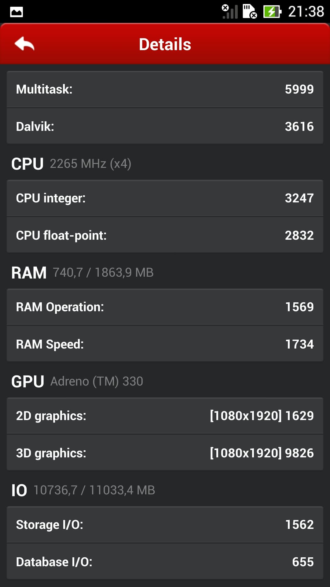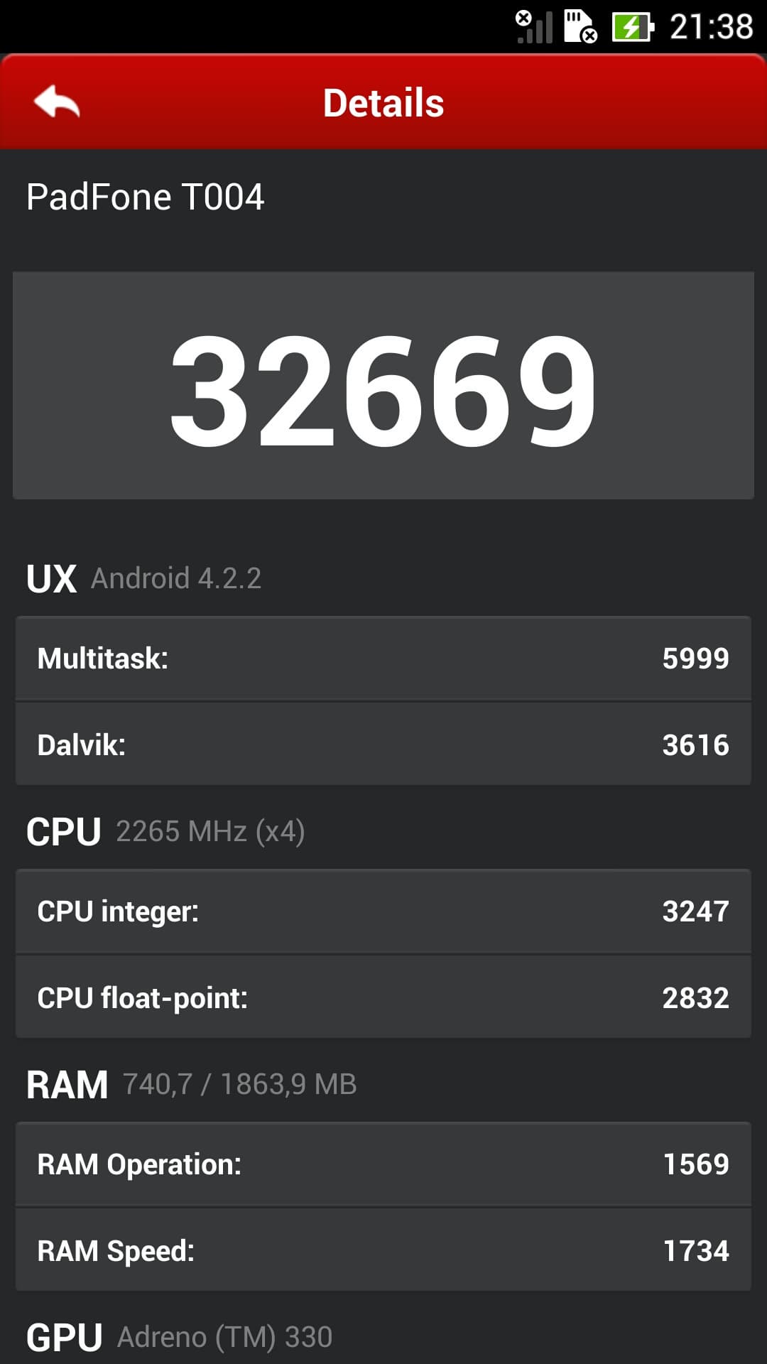 Приводим скриншоты с подробными результатами Asus The new Padfone Infinity.