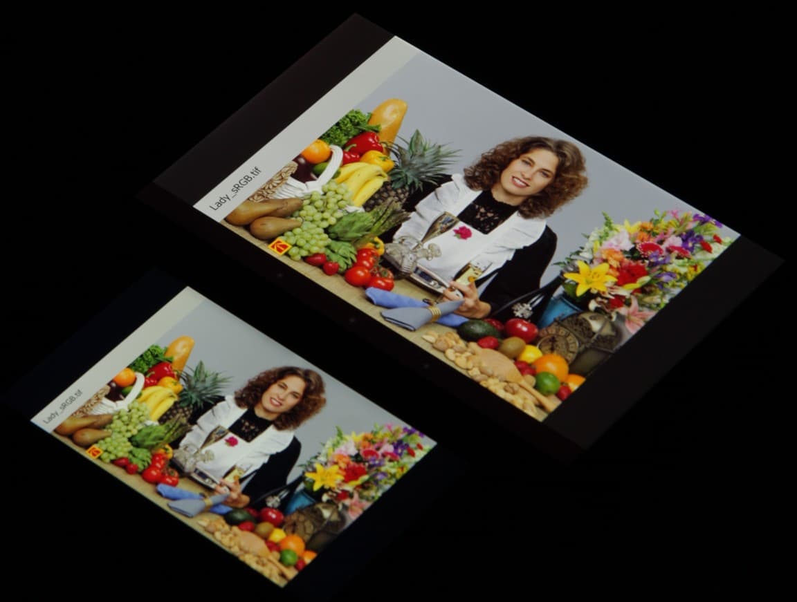 Экран имеет хорошие углы обзора без инвертирования оттенков и без значительного сдвига цветов даже при больших отклонениях взгляда от перпендикуляра к экрану.