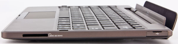 К клавиатурной док-станции планшетный модуль подключается так же, как это было у устройств линейки Transformer. Единственное, что при подсоединении к док-станции нажимать надо более сильно, чтобы планшетный модуль вошел до конца.