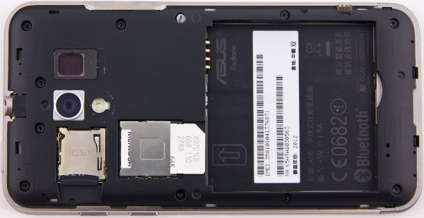 На нижней грани — только крошечное отверстие микрофона. Под задней крышкой, довольно легко снимающейся, мы обнаружим слоты для SIM-карты (привычного формата, Mini-SIM, а не стремительно распространяющуюся в последнее время Micro-SIM) и карты памяти microSD.
