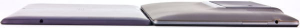 Дизайн планшетного модуля уже менее однозначен. Во-первых, он достаточно толстый и тяжелый. Поэтому если положить этот «планшет» рядом с планшетами конкурентов, а также ASUS Transformer Pad Infinity и Prime, то впечатление будет явно не в пользу PadFone Station. На картинке ниже — Prime (слева) и планшетный модуль PadFone (справа).