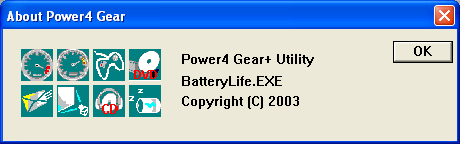 А для начала, приступим к рассмотрению самой утилиты Power4 Gear. Процедура ее установки весьма проста и не требует перезагрузки системы. По умолчанию, пользователю предоставляется возможность запустить утилиту сразу после процедуры инсталляции, а также при каждой последующей загрузке операционной системы. Иконка программы, отображающая выбранный профиль производительности (которые мы рассмотрим ниже), располагается в области системного трея. Двойной щелчок по иконке открывает довольно незатейливое окошко информации о программе (about box), в котором представлены все 8 иконок, соответствующих режимам производительности. В нем также видно, что реальный разработчик утилиты пожелал остаться неизвестным :).