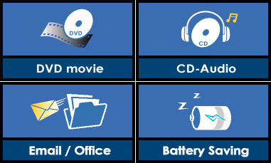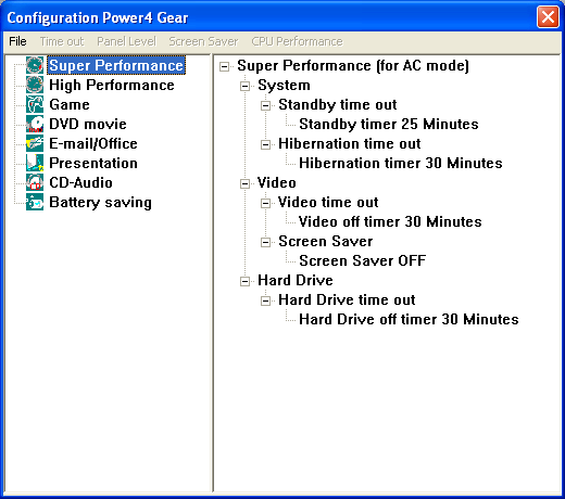 Мы сочли уместным протестировать следующие три режима эксплуатации ноутбука, соответствующие трем различным профилям утилиты Power4 Gear: