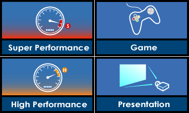 Соответствующая тому или иному профилю производительности картинка всплывает в левой верхней части экрана. Заметим, что представленные на картинках названия «зашиты» в сами картинки, они не изменяются при переименовании профилей в настройках утилиты (переименование изменяет лишь названия, отображаемые в самом окне настроек, а также в контекстном меню иконки приложения, расположенной в системном трее).