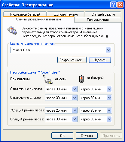 Таким образом, большинство опций Power4 Gear — не более чем альтернативный интерфейс к стандартным настройкам электропитания Windows, причем не факт, что более удобный (как минимум, по причине отсутствия в программы локализации под язык пользователя :)). Реальное отличие от стандартных средств Windows составляют лишь настройки уровня производительности процессора (как мы уже отмечали выше, выраженной весьма абстрактными величинами) и уровня яркости LCD-панели ноутбука.