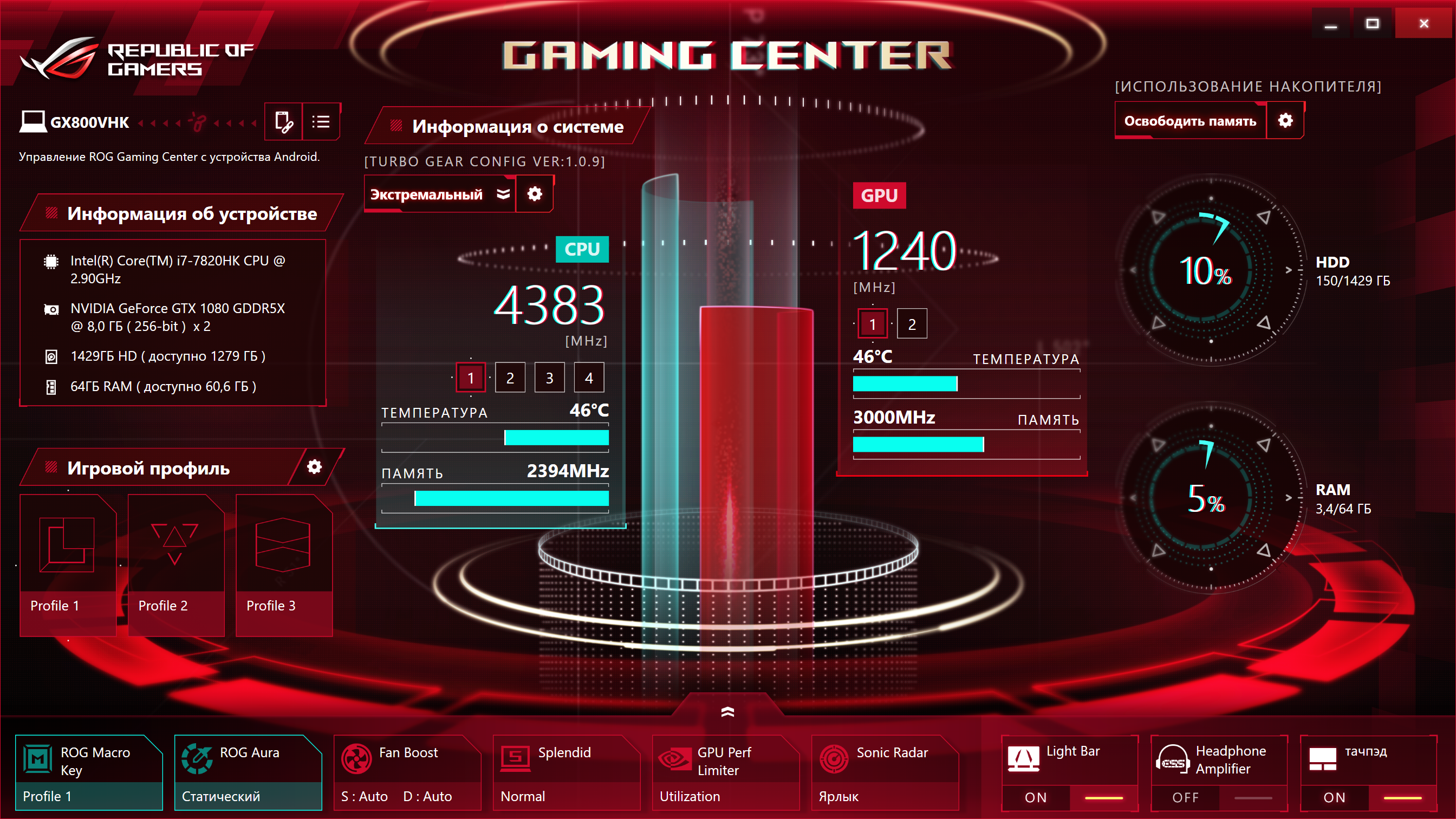 В нашем случае конфигурация ноутбука Asus ROG GX800VHK была следующей: