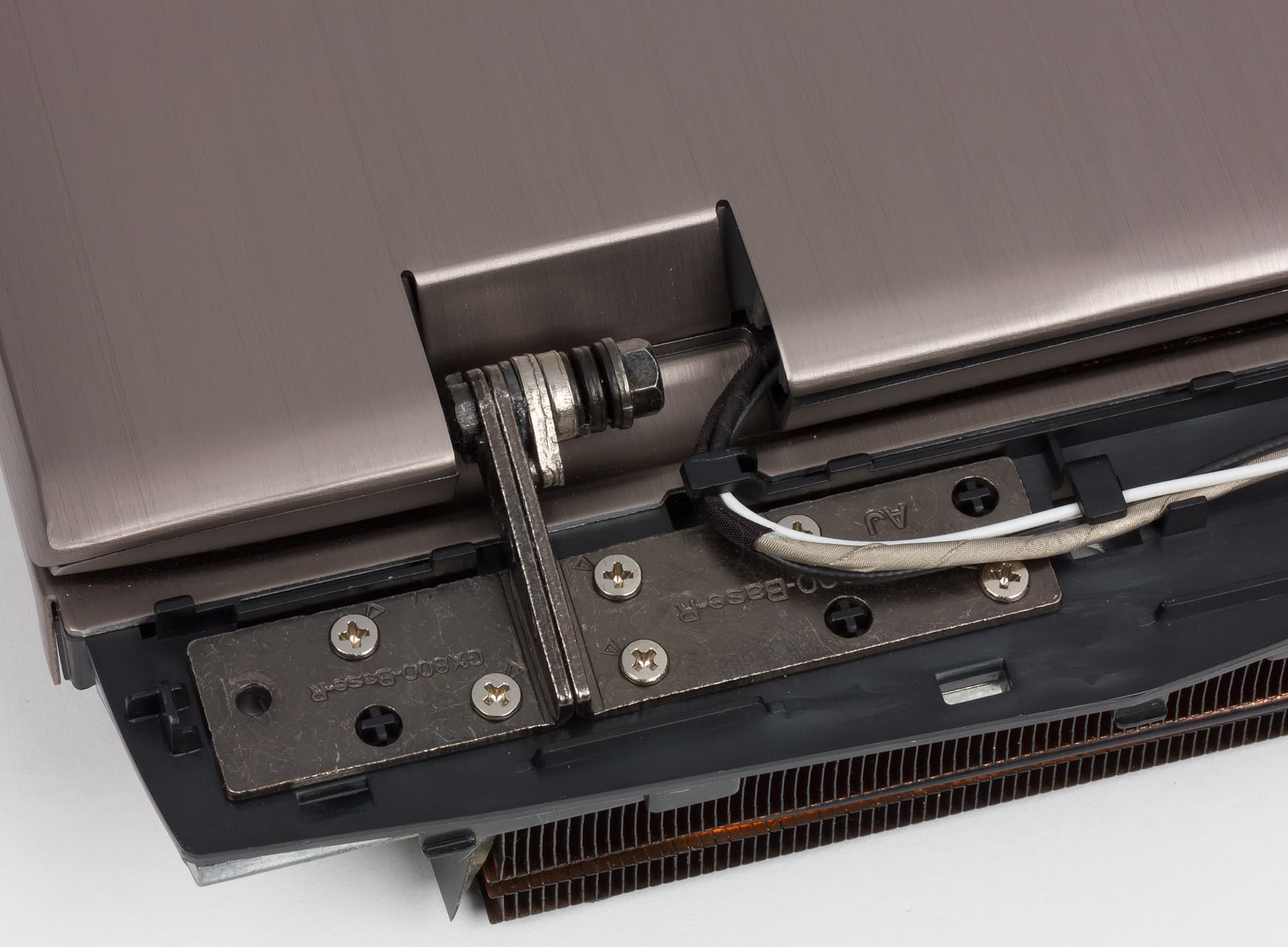 Система крепления экрана ноутбука к корпусу представляет собой две небольшие шарнирные петли.
