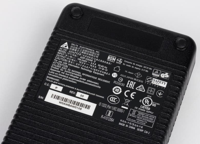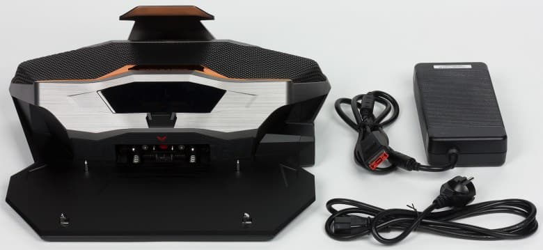 Причем если ранее в чемодан укладывался и ноутбук, и жидкостная система охлаждения, что было очень удобно, то теперь в чемодане, в прокладках из вспененного пластика, лежат только жидкостная система охлаждения и адаптер питания мощностью 330 Вт (19,5 В; 16,9 А) для этой системы охлаждения.
