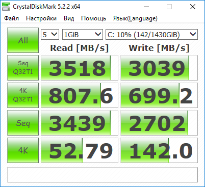 | Скорость копирования данных, с | 41,5±0,3 | 9,5±2,4 | 10,0±0,5 |