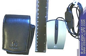 Оптическая мышь от Logitech маленькая, но удобная. Длина шнура с удлинителем такова, что управлять курсором можно с другого стола, так что в поездку удлинитель можно и не брать.
