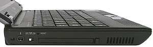 Если не считать крышки, основное отличие S200N состоит в цветовом решении корпуса. Если у S200 корпус серебристый, а "рабочая поверхность" открытого ноутбука — черная, то S200N — черный с серой крышкой. Что лучше — судить сложно. Мне лично понравились оба варианта. Если стояла задача сделать так, чтобы S200N можно было бы сразу отличить от S200, и при этом новая модель не потеряла бы в привлекательности, то с этим дизайнеры справились. Размещение разъемов тоже удачное. По сути, они сосредоточены на правой боковине. Левая служит для подключения опционального комбо-драйва IEEE 1394. Так что при "настольной" работе справа будут провода, слева — оптическмй драйв. Логично.