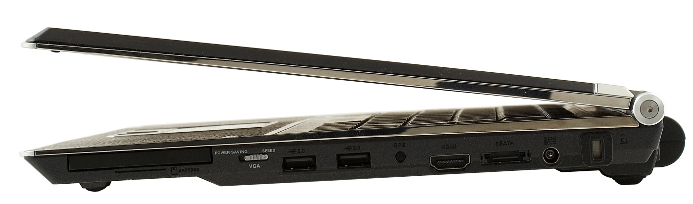 На правой грани расположен разъем ExpressCard, переключатель внешнего и интегрированного видеоядра, два порта USB, разъем для внешней антенны GPS (хотя, по словам представителей компании, все должно работать и так), разъемы HDMI и eSATA, вход питания, порт замка Кенсингтона.