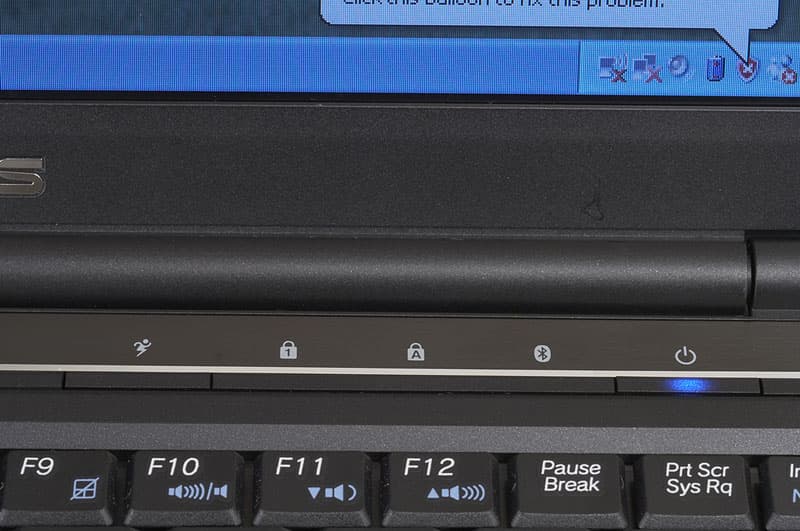 Индикаторы Lock`ов, кнопка включения питания и традиционная для ноутбуков ASUS кнопка управления утилитой Power4Gear+ расположены над клавиатурой справа.