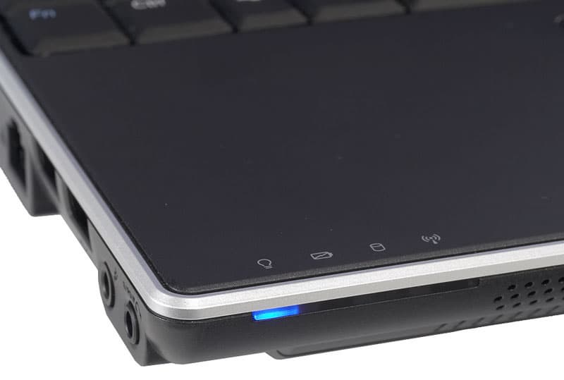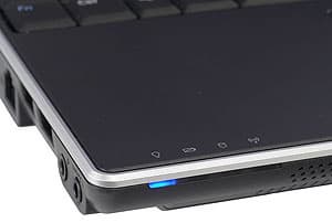 Клавиши тачпада разделяет симпатичная синяя светящееся полоска. Оригинально! Вообще в "рабочем" состоянии ноутбук смотрится гораздо эффектнее, чем в выключенном. При этом дизайнерам удалось избежать "попугайности" — все индикаторы имеют синий цвет. Пустячок, а приятно.