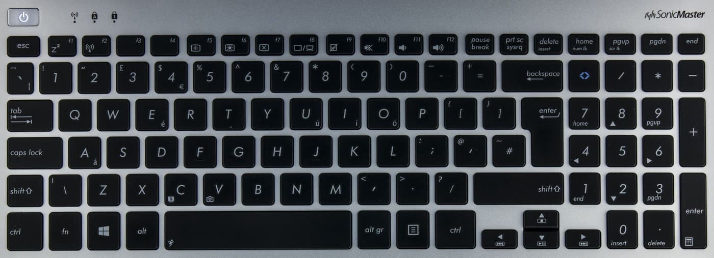 Практически все современные широкоформатные ноутбуки с диагональю экрана 15,6 дюйма имеют клавиатуру с цифровым блоком. Однако на полноформатную клавиатуру места все равно не хватает, поэтому что-то все равно приходится ужимать.