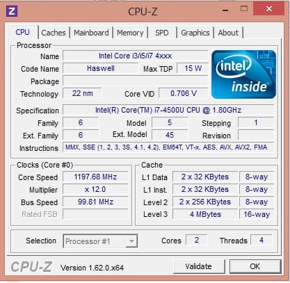 Самый интересный компонент — это процессор. Здесь у нас Core i7-4500U.