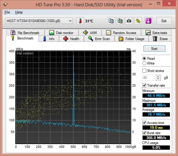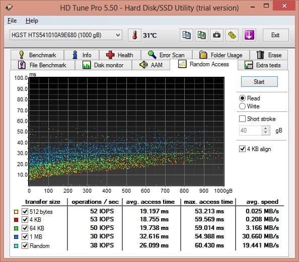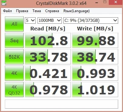 В принципе, скорость нормальная для жесткого диска. Но даже тут видно, насколько медленным он может быть. Посмотрим на результаты другой тестовой утилиты.