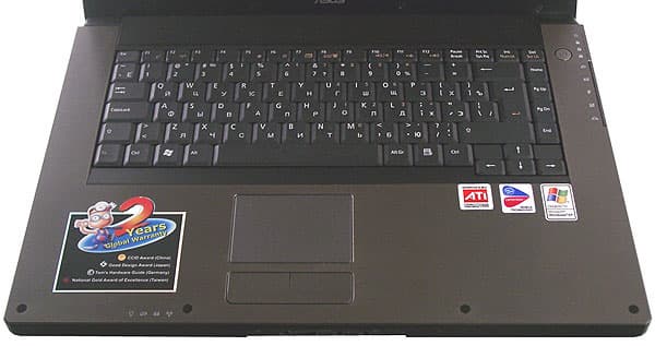 Динамики у ASUS W1 расположены не по бокам клавиатуры, как у многих ноутбуков с широкоформатной матрицей, а на переднем торце. Тем не менее, на размерах клавиатуры это не сказалось — «поля» по бокам весьма широкие. Раскладка знакома пользователям десктопных клавиатур от Logitech — добавлена только клавиша «Fn» и вместо дублирования клавиши «,|» появилась весьма удобная в русской раскладке клавиша «<>». Клавиатура достаточно мягкая, работать с ней удобно.