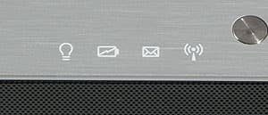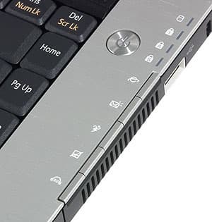 Кнопка включения ноутбука, индикаторы Lock`ов и кнопки быстрого вызова приложений расположены справа от клавиатуры. «Полу-невидимые» (по определению производителя) кнопки быстрого вызова приложений выглядят эффектно, но их использование требует минимальной привычки — нажимаются они не вниз, а вбок. Цвет всех индикаторов, подсветки кнопки включения питания и мультимедийного дисплея — оранжевый. Строго и красиво. Единственное замечание — индикаторы состояния расположены на переднем торце, поэтому плохо читаемы при взгляде сверху.